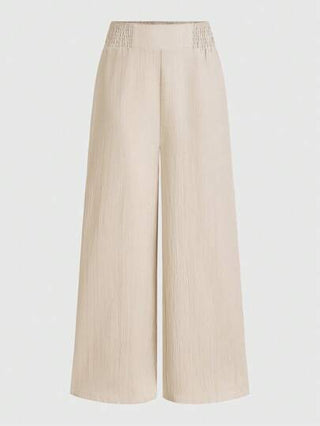 Essnce سراويل نسائية بخصر عالي وساق واسعة غير ملتصقة بالساقين قماش كاجوال بلون أحادي