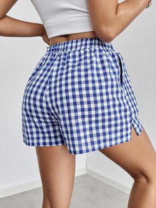 Essnce سراويل نسائية صيفية بطبعة مربعات عارضة وجيوب