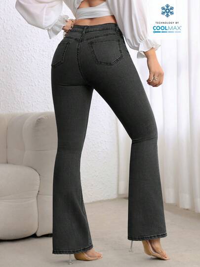 Essnce سروال جينز كاجوال نسائي ضيق الساق مع جيوب وفرع الساق