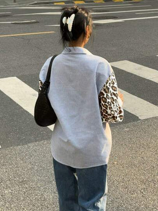 Essnce قميص كاجوال للنساء بأكمام طويلة بنمط مرقط من نمر وخطوط ولوحات ،ملابس مناسبة للنساء لحفلات الموسيقى والحفلات