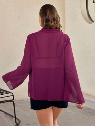 Essnce قميص كاجوال نسائي بأكمام طويلة وتصميم شفاف مريح فضفاض من قماش الشيفون بلون بنفسجي، ملابس صيفية رائعة للنساء، بلوزة نسائية، ملابس عيد الحب، ملابس للشاطئ