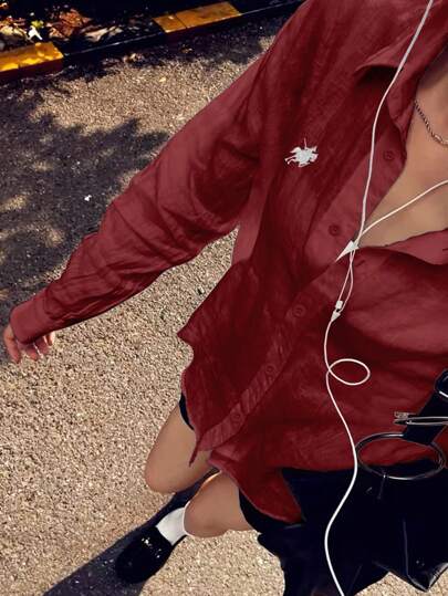 Essnce قميص نسائي مطبوع بطبعة فارس، طويل الأكمام، أحادي الصدر، فضفاض وكاجوال