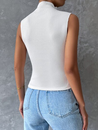 Essnce لباس علوي تانك وقوف الياقة محبوك مضلع