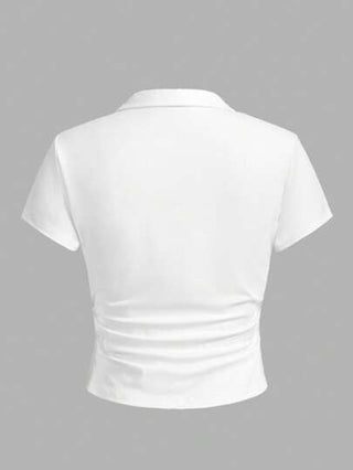 Essnce مجموعة قميصين كاجوال نسائي بياقة بولو وياقة على شكل حرف V مطوي مع شعار صغير للحصان، مناسب للربيع والصيف
