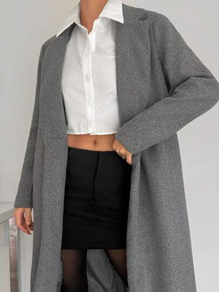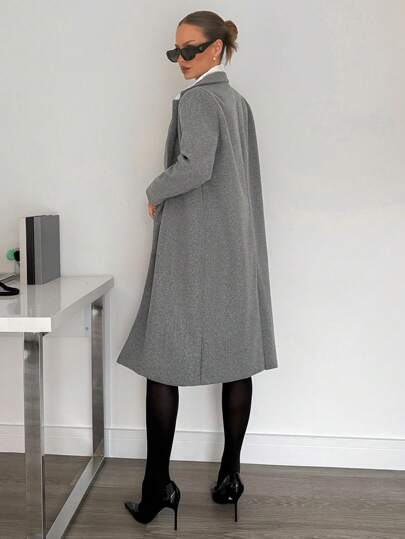 Essnce معطف صوف طويل للنساء من السلسلة الرمادية، ملابس نسائية للخريف، جاكيت نسائي، بليزر صوفي، ملابس خارجية نسائية، معطف رمادي داكن، ملابس نسائية للمكتب، ملابس نسائية كاجوال للتنقلات اليومية، سلسلة رمادية