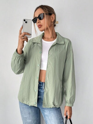 Essnce معطف منخفض الاكتاف حافة رباط زر ضغط امامي
