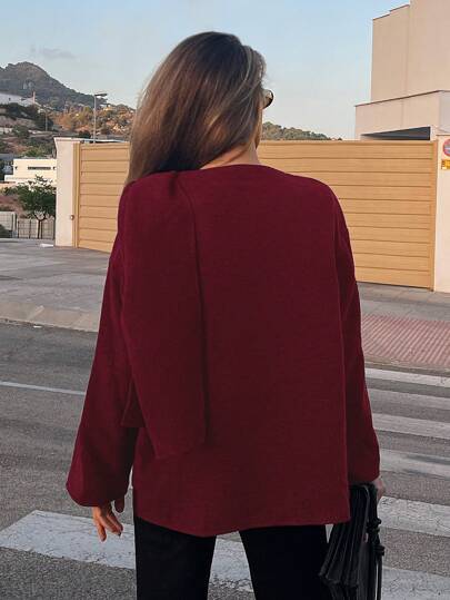 Essnce معطف من الصوف الأسود فضفاض وشامل للنساء، موديل 2024 ملابس موسم الخريف، ملابس مطارات، جاكيت قصيرة كارديجان دافئة للشتاء