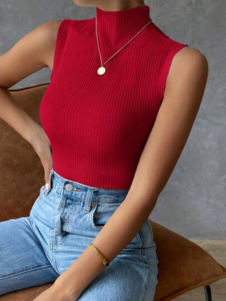 Essnce ملابس علوية بدون أكمام عالي الرقبة مصنوع من الصوف المضلع