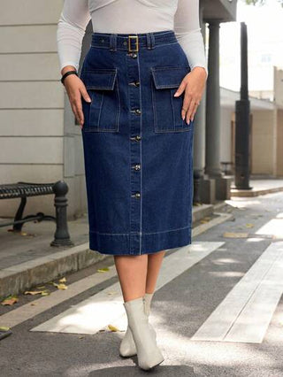Essnce تنورة جينز صغيرة للمقاسات الكبيرة، كاجوال وأنيقة للبس اليومي