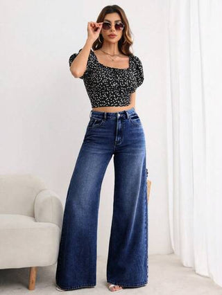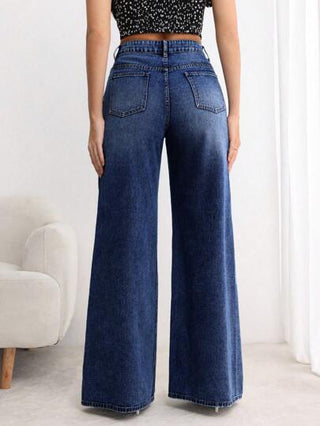 Essnce سراويل جينز نسائية واسعة الساق بجيوب وفضفاضة