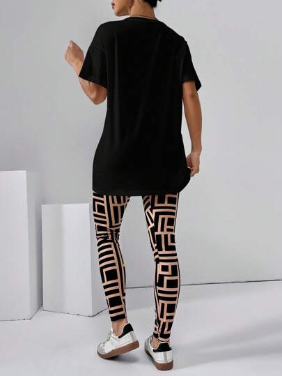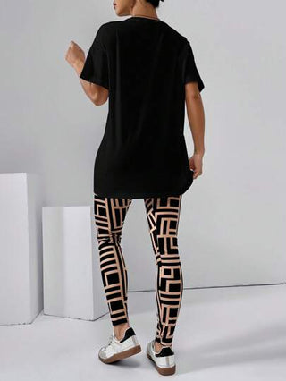 Essnce ملابس علوية صيفي عادي بأكمام قصيرة ومجموعة حريمي وطماق ضيقة بطباعة الدب الصغير. مجموعة بنطلونات نسائية من قطعتين لفصل الصيف