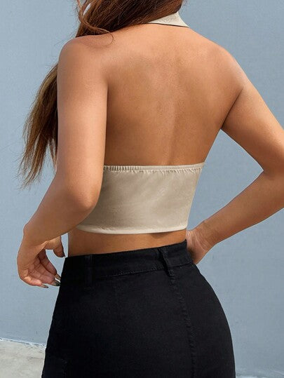 EZwear بدلة كاكي للنساء جاكيت بدون أكمام مُنسوجة