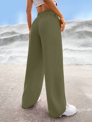 EZwear بنطلون بساق واسع موحدة اللون خصر عالي