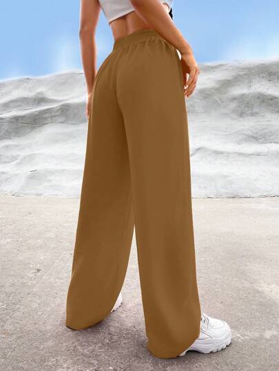 EZwear بنطلون سادة ذو خصر عالي وساق واسعة، ملابس رمضان