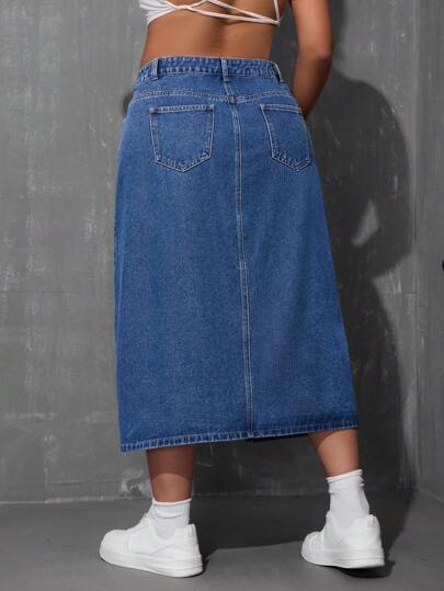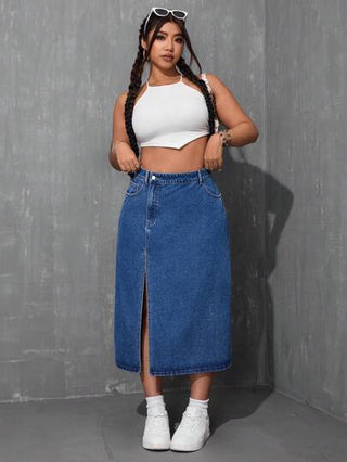 EZwear تنورة جينز كاجوال ذات شق أمامي لقياسات كبيرة الحجم