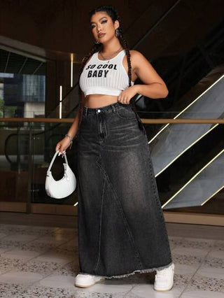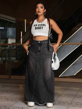 EZwear تنورة كاجوال طويلة مع جيوب وحاشية مبللة مقاس كبير للسيدات