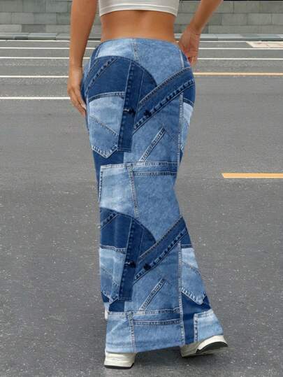 EZwear تنورة نسائية على شكل خط A بتأثير جينز مطبوع بطريقة الربط والصبغ، مناسبة للصيف
