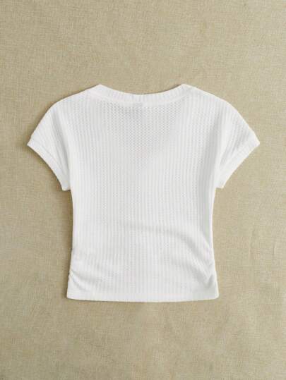 EZwear تي شيرت قصير موحدة اللون محبوك مضلع