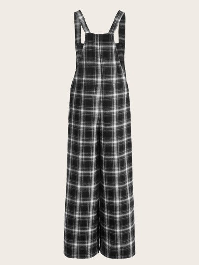 EZwear جمبسوت بحمالات طباعة مربع النقش بدون تي شيرت