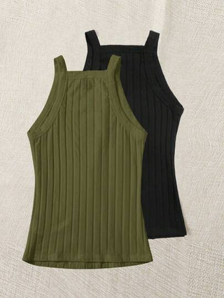 EZwear سترة نسائية بدون أكمام بتصميم قلنسوة محبوك بلون سادة دائري بقطعتين
