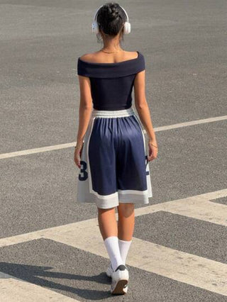 EZwear سروال قصير كاجوال للنساء بخصر باسحب وطباعة أحرف