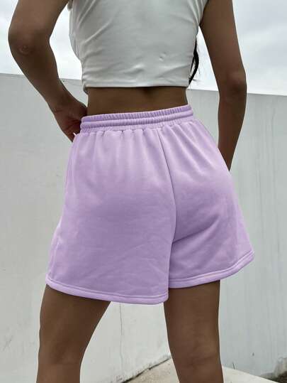 EZwear شورت رياضي وردي فاتح مرن بخصر رباط لربيع وصيف واسع وشكل عفوي بتفاصيل ملحقة