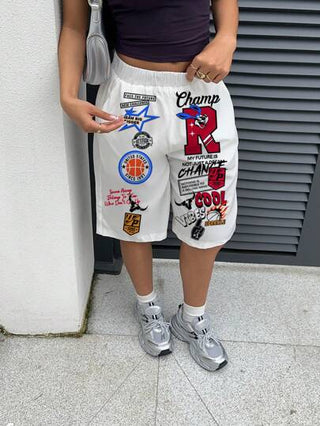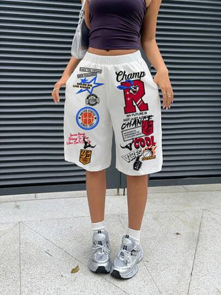 EZwear شورت كاجوال بخصر متوسط فضفاض مستقيم الساق بطول 7/10 مع جيوب جانبية، مناسب للصيف
