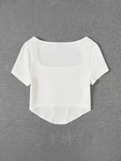 EZwear قميص أبيض ياقة مربعة ملائم للصيف مع خياطة أمامية