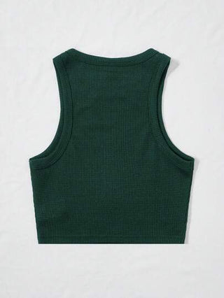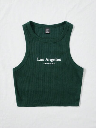EZwear لباس علوي تانك بطباعة أحرف محبوك مضلع