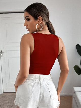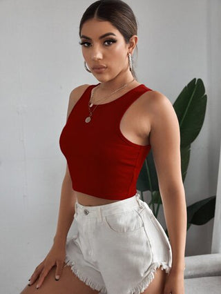 EZwear لباس علوي تانك قصير محبوك مضلع وبلون موحد