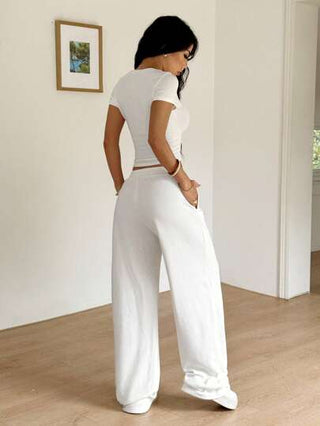 EZwear مجموعة من قطعتين للنساء، بدلة منزلية مطرزة مخصرة، صيفية بيضاء