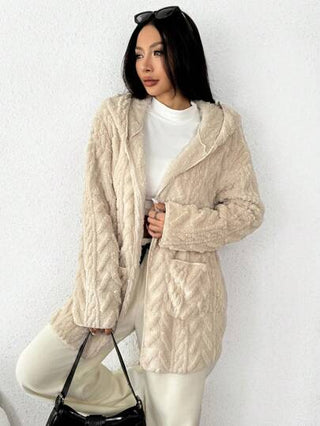 EZwear معطف شتوي بأكمام طويلة مقنع واسع وكاجوال، ذو جيوب ورقع، ملابس دافئة