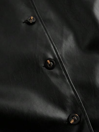 EZwear معطف طويل مطرز بجلد اصطناعي وفرو موسمي خريف/شتاء, مقاس مضبوط