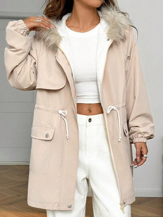 EZwear معطف قبعة منسوج للنساء اللون الخاكي عادي