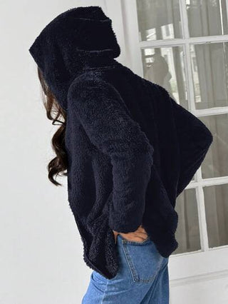 EZwear هودي كاجوال قابل للعكس من الفليس بلون أزرق داكن للخريف والشتاء