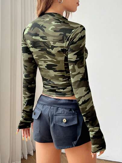 EZwear 1قطعة جاكيت مضبوطة مزيبها محاك الرقبة بطبعة كاموفلاج