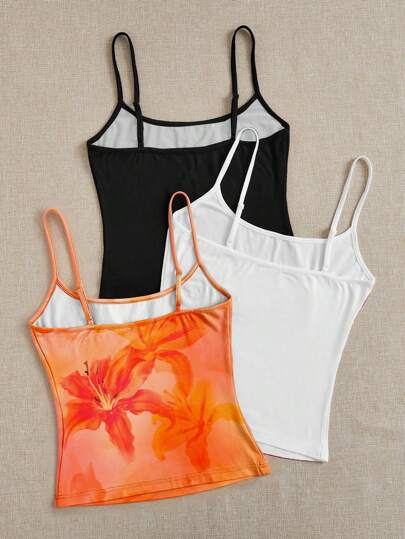 EZwear 3 قطعة طقم للنساء ملابس علوية ألوان معطر بنقشة الأزهار ، بدون أكمام، مناسب للصيف ، العطلات، مهرجانات الموسيقى