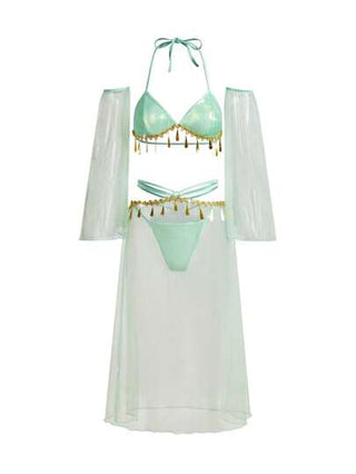 Fantasy Costume طقم ملابس داخلية نسائية مكون من 5 قطع بتصميم أسلوب استوائي إغرائي - حمالة صدر لا سلكية،سروال كلوت، تنورة قصيرة، أكمام الذراع