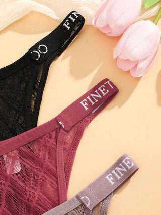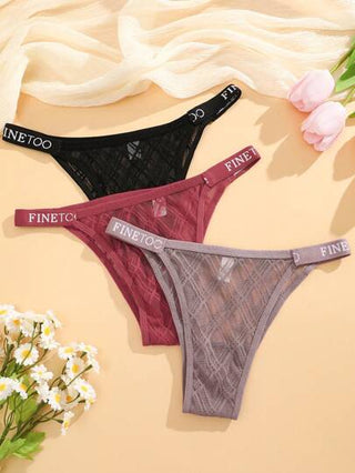 FINETOO 3قطع/طقم ملابس داخلية قطنية مخططة للنساء بخصر شبكي مطبوع