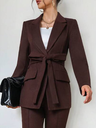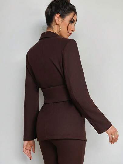 Firerie بدلة نسائية أنيقة وأنيقة لون بني داكن مزودة بحزام