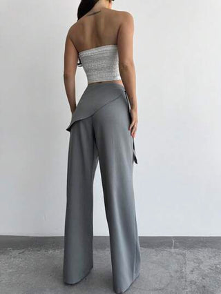 Firerie جمبسوت نسائية كاجوال للعطلات واليومية أنيقة باللون الرمادي الداكن ذات خصر عادي قطعتين تتكون من سراويل فضفاضة طويلة مستقيمة الساقين