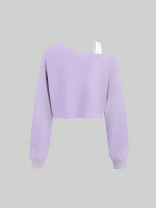 Flirla بلوزة نسائية عرضية الرقبة غير متماثلة بألوان متباينة، أكمام طويلة