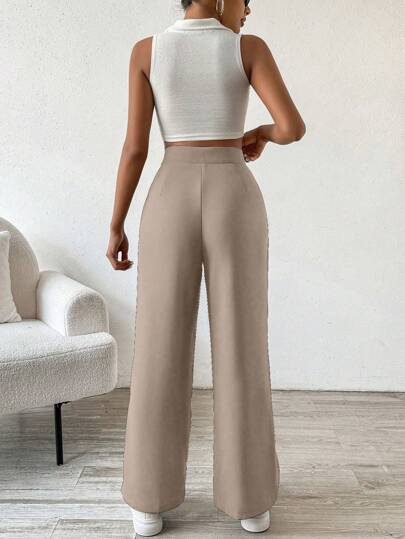 Flirla بنطال سروال كتان بأزرار وطيات، ملابس رمضان