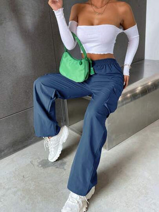 Flirla بنطال عمل مستقيم بلون سادة عارض