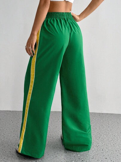 Flirla بنطلون رياضي مستقيم كاجوال مطبوع برسالة من قطع ملونة