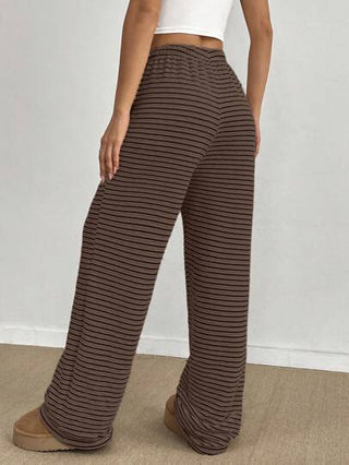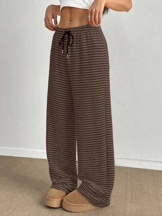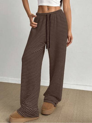 Flirla بنطلون نسائي فضفاض بخصر قابل للتخصير وبساقات واسعة بنقشة مخططة