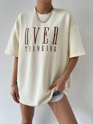 Flirla تي شيرت نسائي بتطريز حرفي وياقة مستديرة