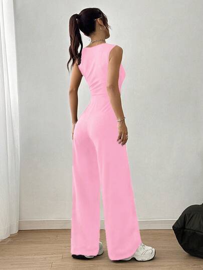 Flirla جمبسوت مريحة بياقة مربعة، بسيطة وعصرية، مناسبة للصيف، جمبسوت بحمالات رفيعة ذات لون واحد