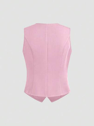 Flirla سترة كاجوال بأزرار أمامية فردية وياقة على شكل حرف V لون أحادي للنساء
