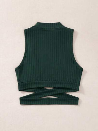 Flirla لباس علوي تانك متقاطع مقصوص الخصر وقوف الياقة